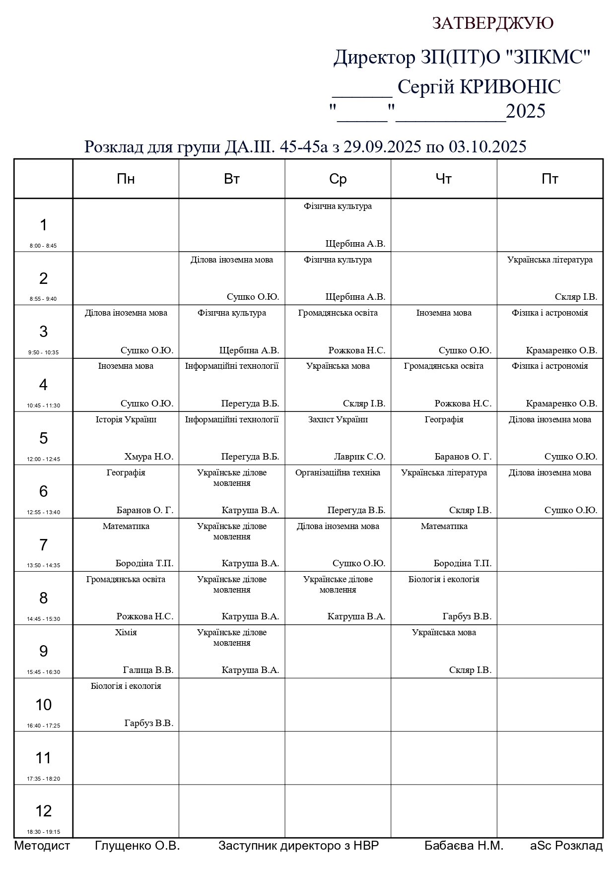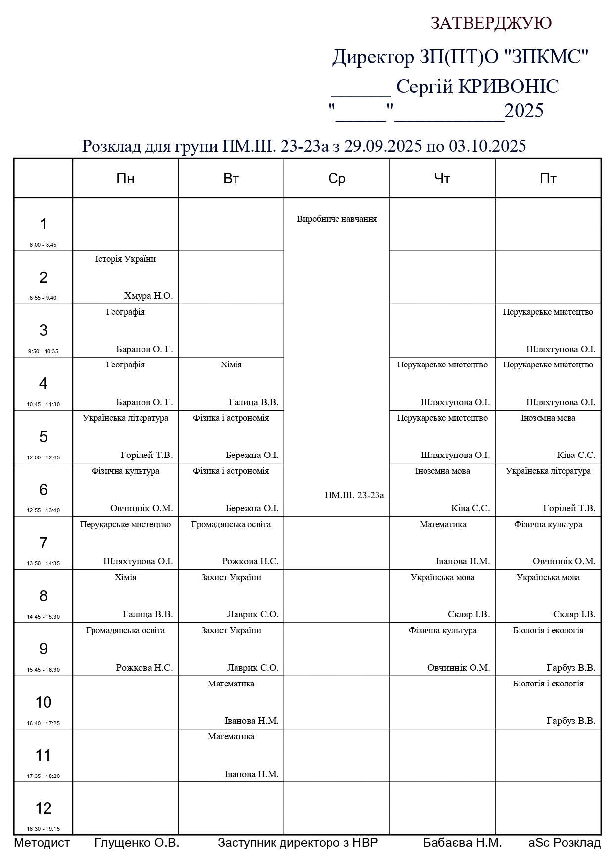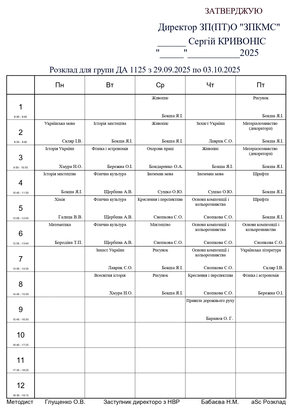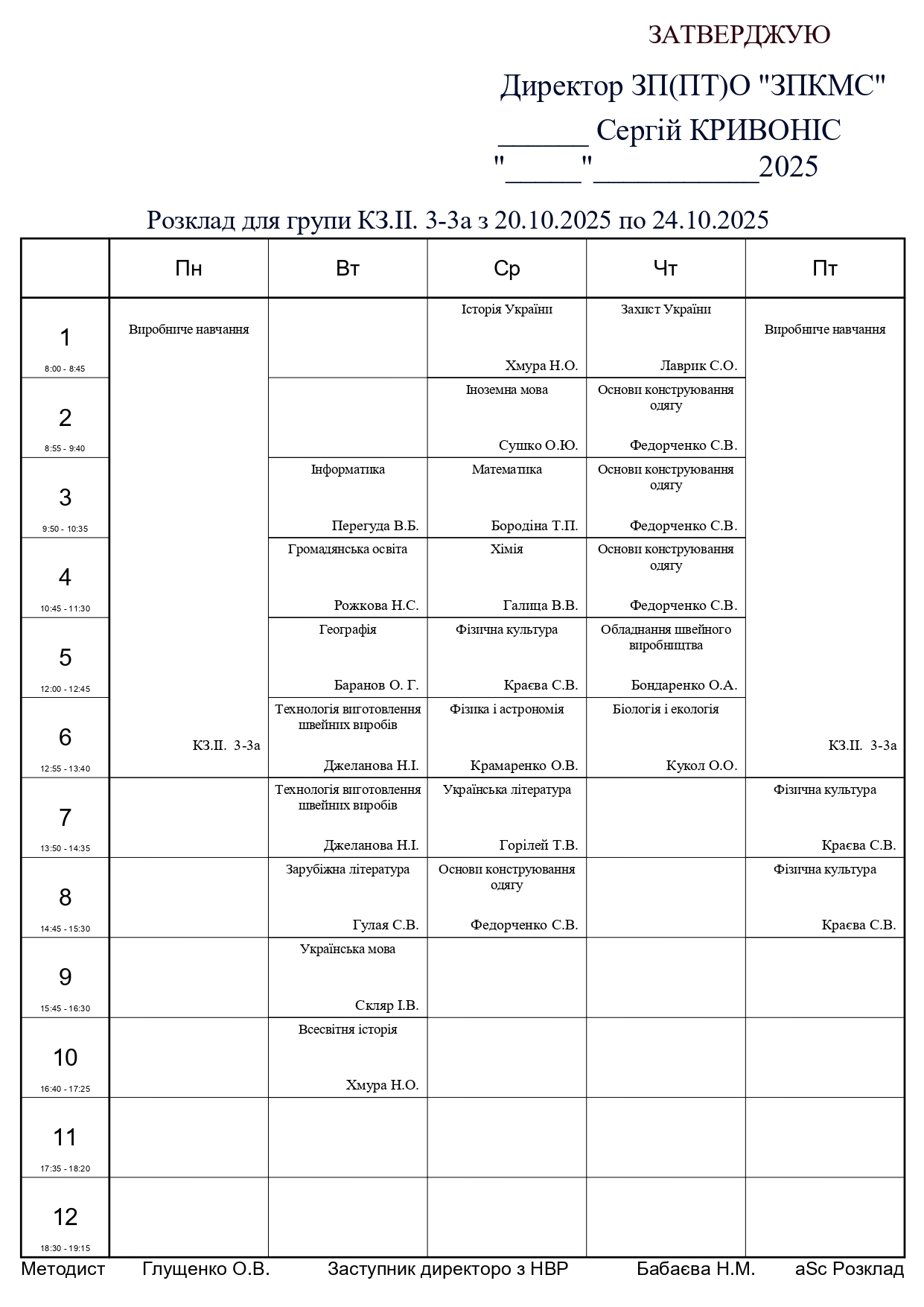 На період навчання з використанням дистанційних технологій в день занять згідно розкладу оновлюються навчальні матеріали в додатку Google Classroom на платформі G Suite for Education (вхід за особистими обліковими записами) та додатків (Viber, тощо)