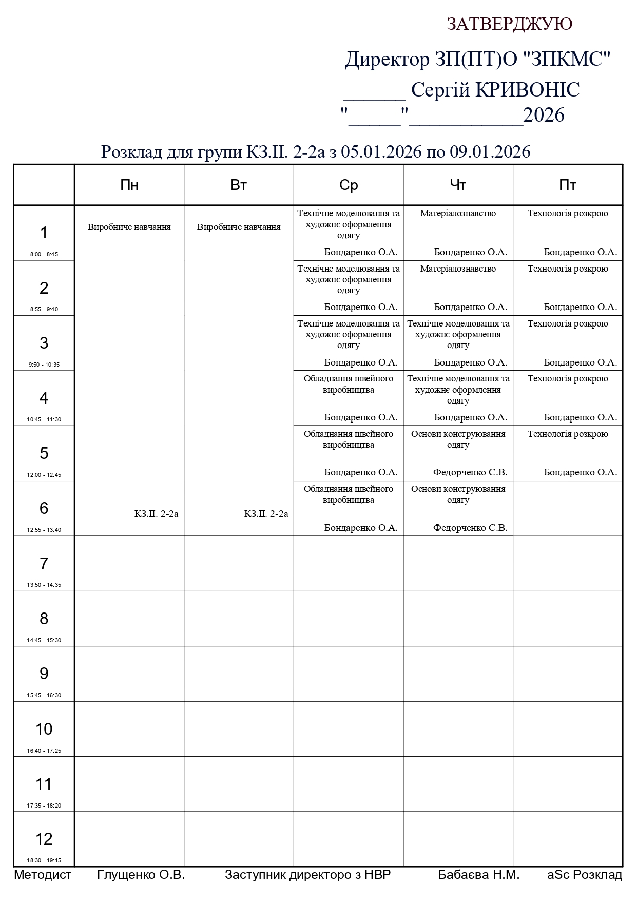 Розклад занять