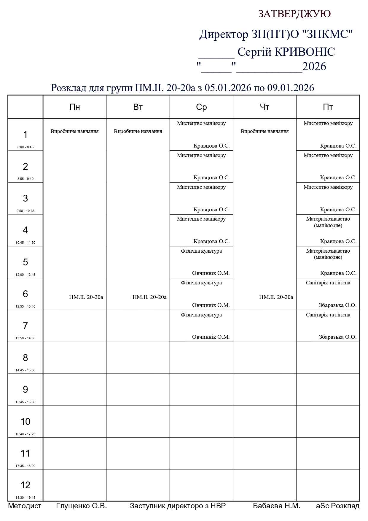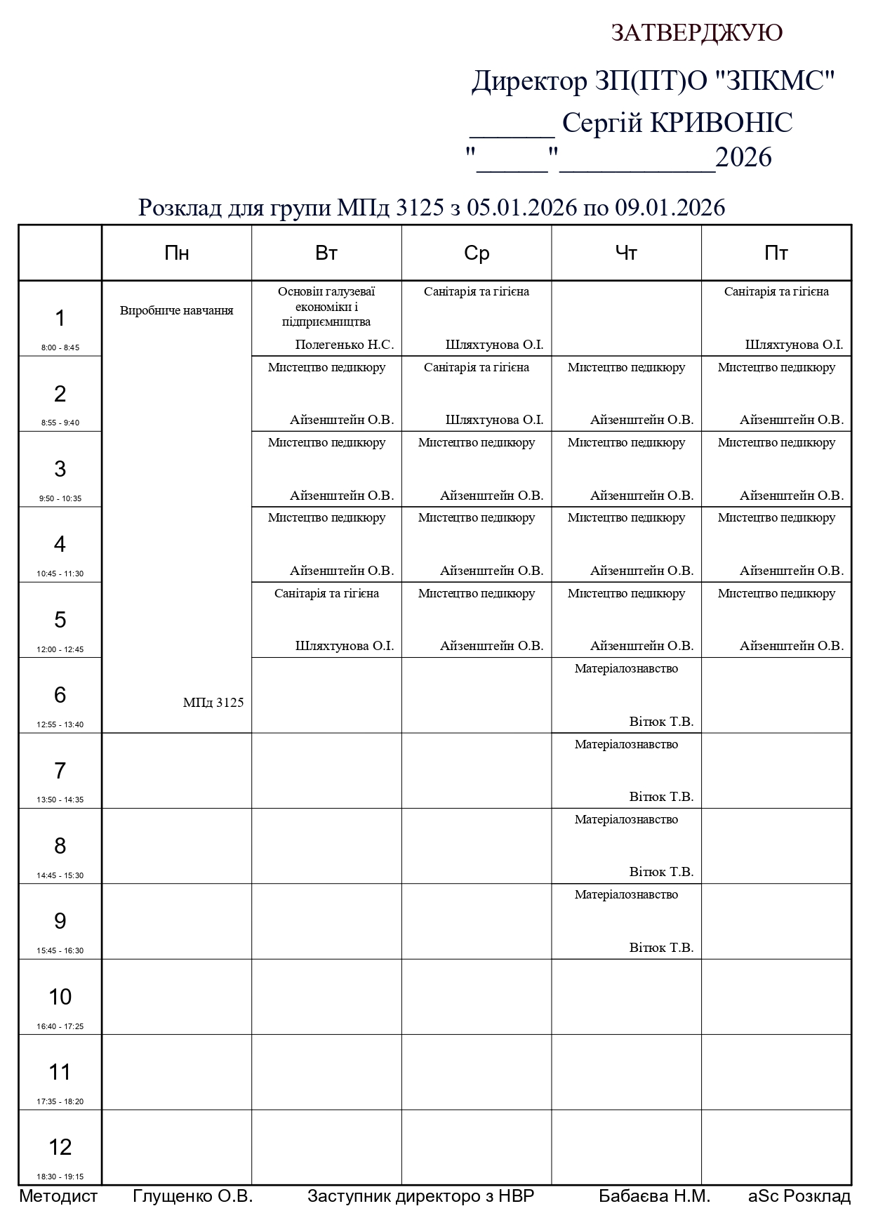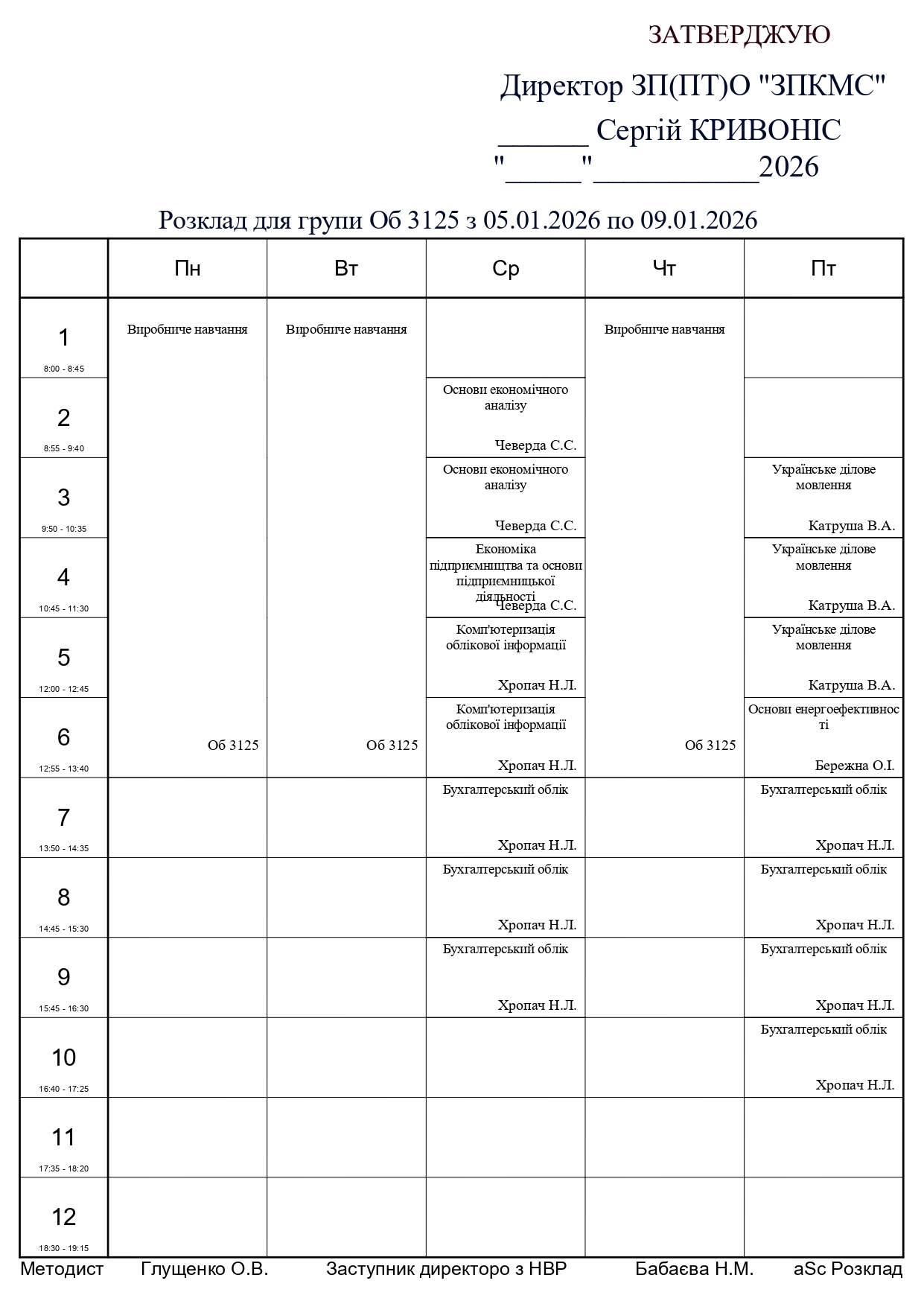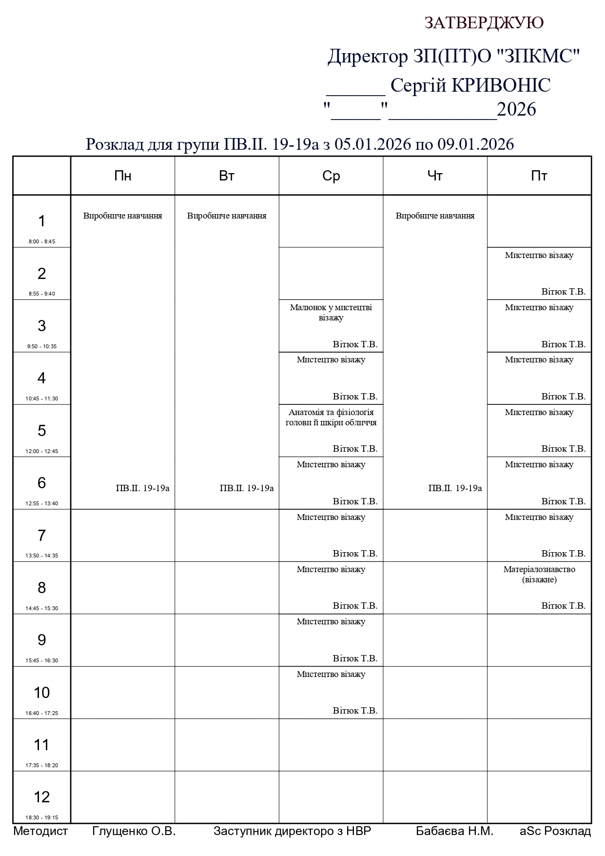 Розклад занять по групам