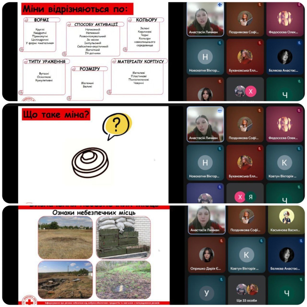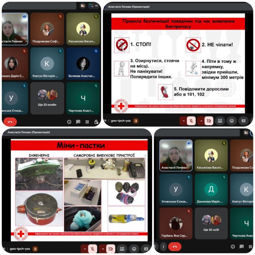 Для нашої молоді відбулася онлайн-лекція з мінної безпеки та попередження ризиків вибухонебезпечних предметів, яку провела інструктор Товариства Червоного Хреста України.