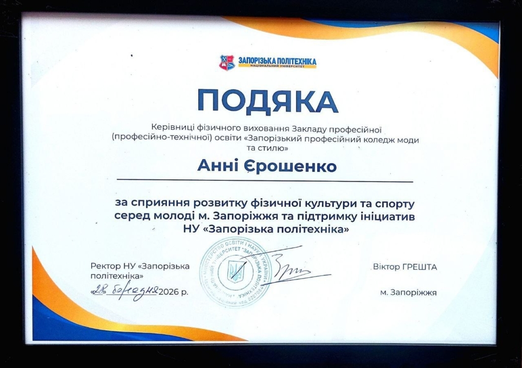 - колективу закладу за активну участь у комплексному спортивному заході «Абітурієнт НУ “Запорізька політехніка” 2026»;